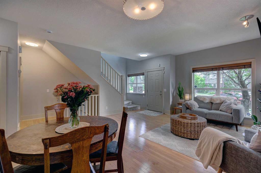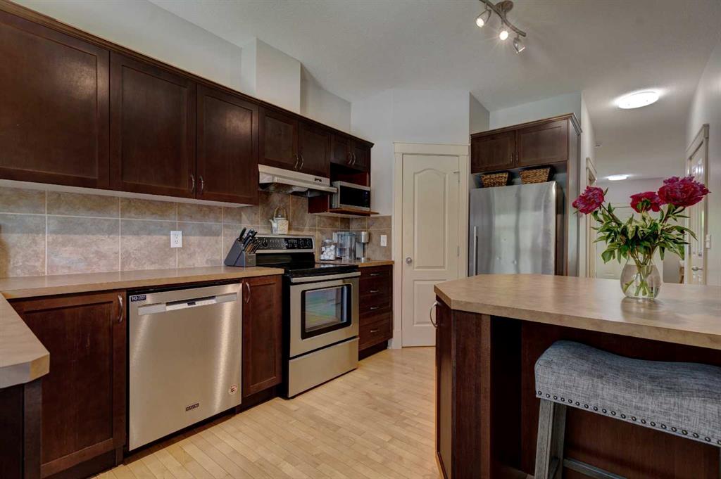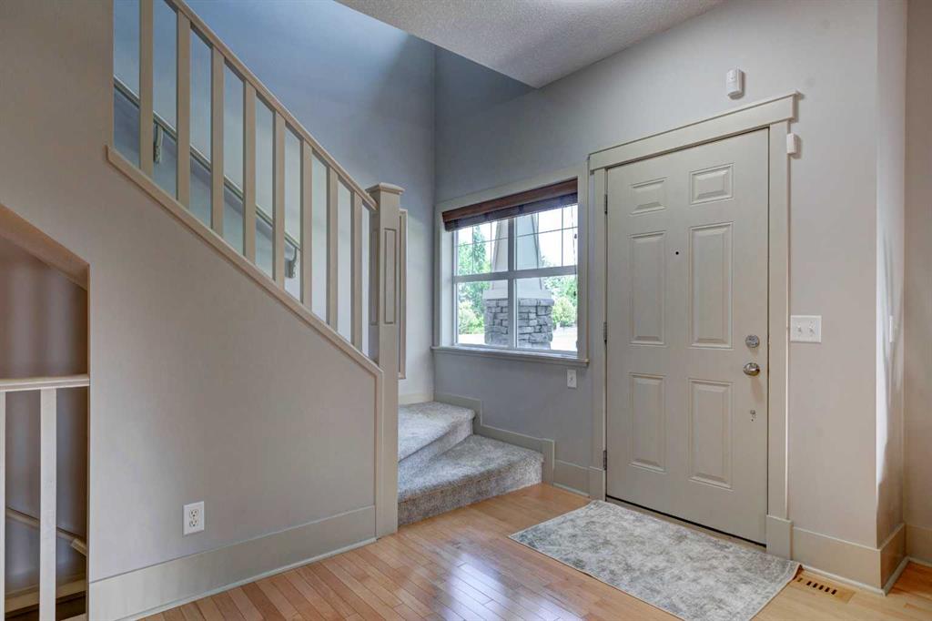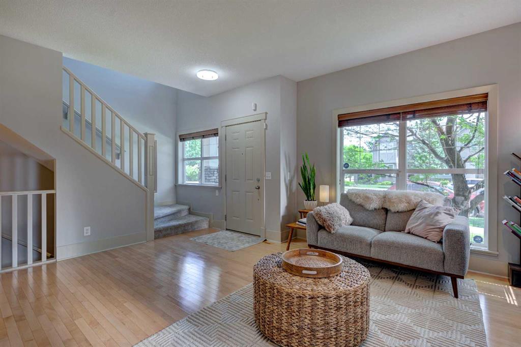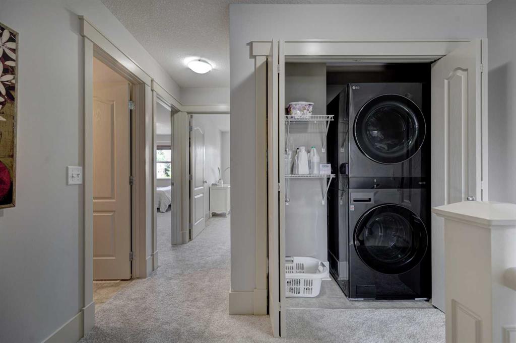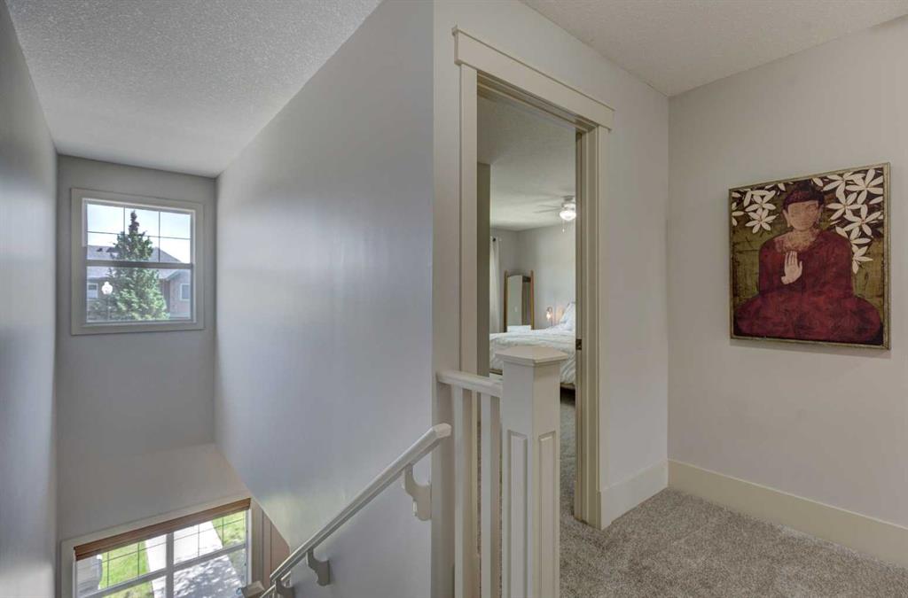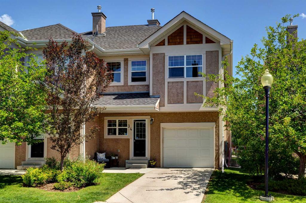 LOCATION LOCATION - With over 1900 sq ft in developed living space, this 3 bedroom 2.5 bathroom townhome is close to schools & shopping in desirable West Springs. The floor plan impresses with the main floor featuring a large living room with cosy fireplace & ample dining space. The kitchen is perfect for casual dining and accesses the west patio. Upstairs you will find a large primary bedroom with a spacious walk-in closet and 3 piece ensuite. The upstairs is complete with two additional bedrooms, main bathroom & laundry for ultimate convenience. The basement is finished with a recreation room ready for your enjoyment and plenty of storage space in the mechanical room. This semi-detached townhome also hosts an oversized single attached garage, private patio (WEST FACING) & driveway. HWT 2022, carpet 2025, Washer/Dryer 2025 and newer paint throughout. One of the best locations within West Springs & the Wentworth with street frontage and is only steps away to West Springs Elementary, West Ridge Junior High, ravine pathways & a short walk to all amenities 85th street has to offer.