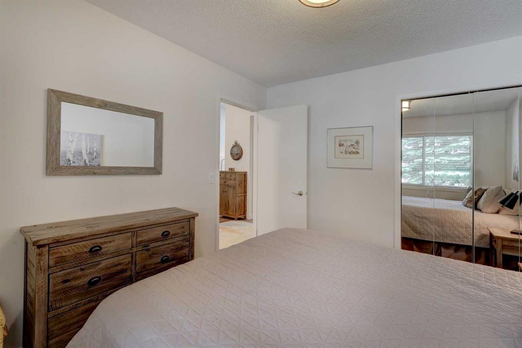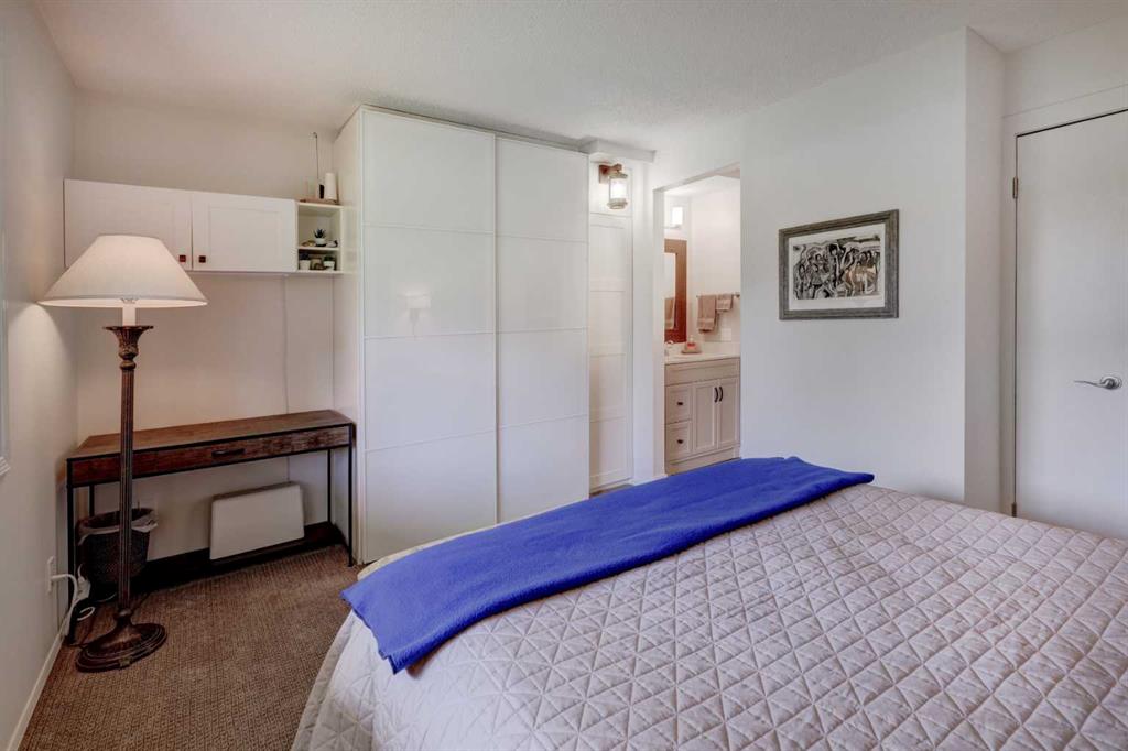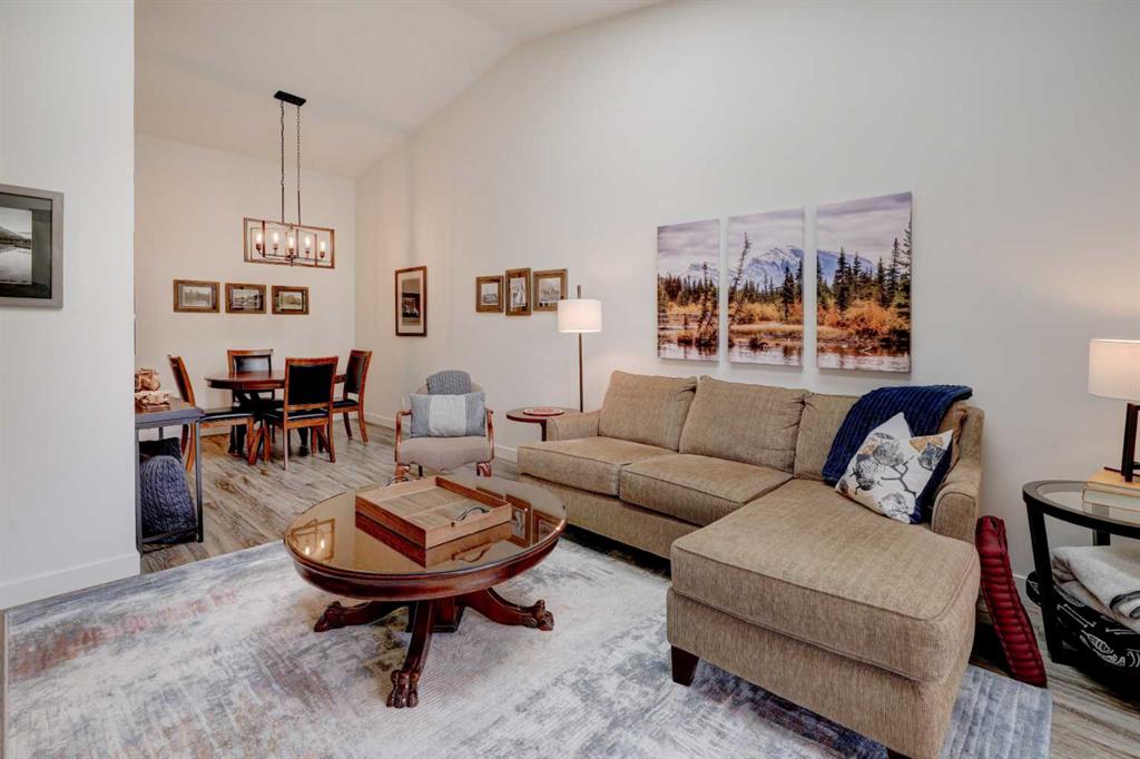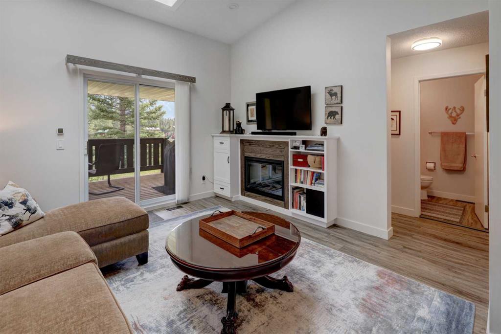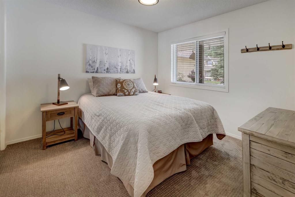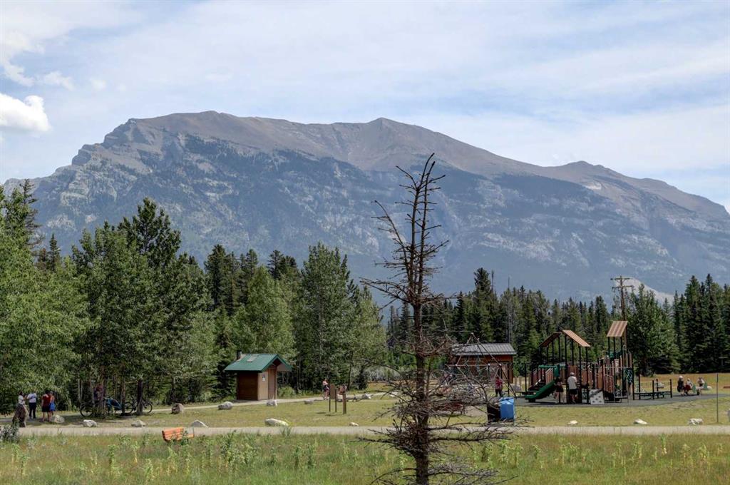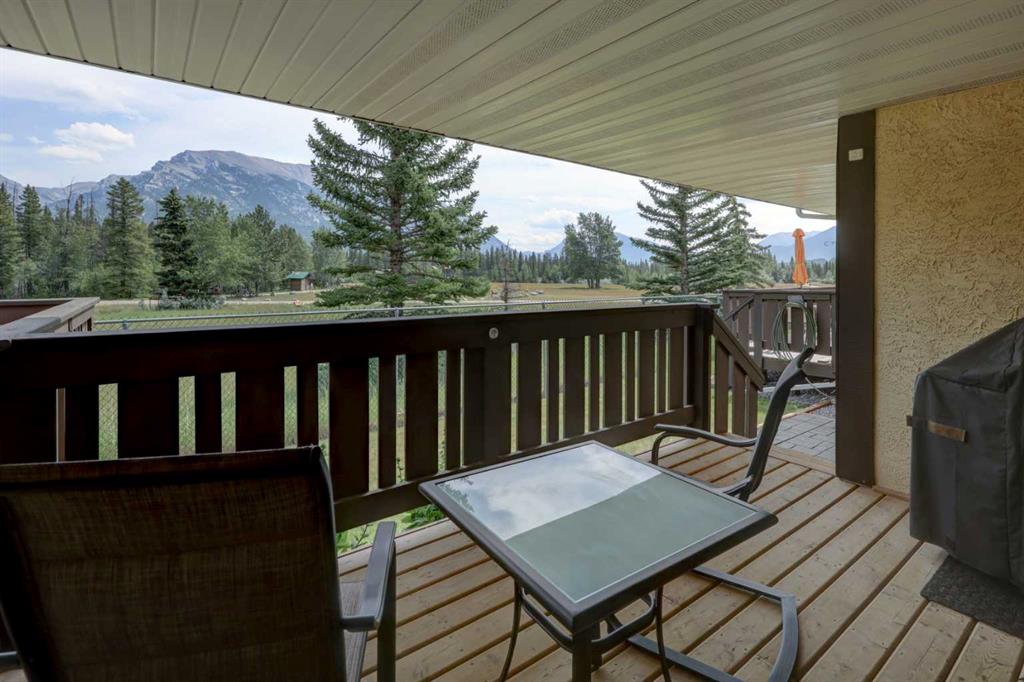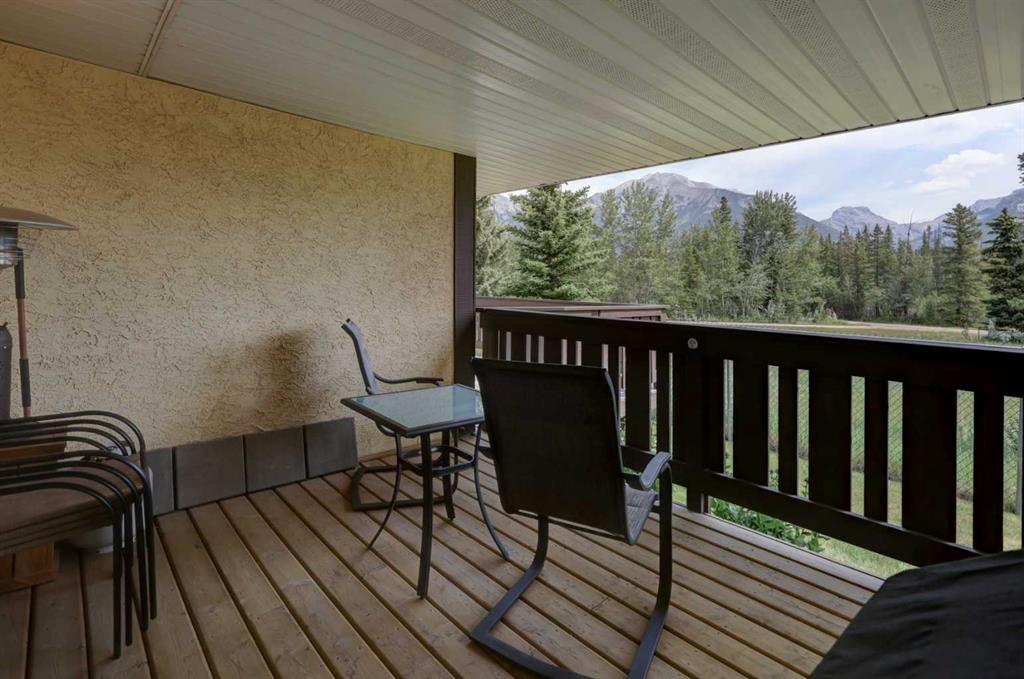 RARE OFFERING – VIEWS – TRANQUILITY – GREEN SPACE - Welcome to Mountain Shadows, an exceptional bungalow villa nestled in a serene 55+ complex, backing onto West Canmore Park and the Bow River—just five minutes from downtown. Thoughtfully upgraded and meticulously maintained, this home offers 1,148 sq ft of beautifully developed living space, blending comfort, functionality, and natural beauty. Step up to the inviting front patio and take in stunning views of Ha Ling and Miner's Peak. Inside, the main level opens to a spacious foyer that leads into an updated kitchen, featuring two-toned oak cabinetry, stainless steel appliances, a moveable island, and a generous pantry. The open-concept dining and living areas are perfect for entertaining or simply relaxing, with designer lighting, built-in storage, and a cozy electric fireplace. Living space also features newer double skylights that fill the space with natural light, and are complemented by recently added blown-in insulation in the lofted ceiling for enhanced comfort and efficiency. All other windows were recently installed. The patio door opens onto a covered deck with an additional lower patio, offering sweeping views across to Grotto Mountain and backs onto the peaceful green space of West Canmore Park. The primary bedroom is a true retreat with mountain views, dual wardrobes, built-in desk and cabinetry, and a beautifully appointed ensuite featuring double sinks with storage, an oversized walk-in shower, and toilet area. The spacious second bedroom also enjoys mountain views and includes a double wardrobe. A fully renovated four-piece main bathroom, a dedicated laundry room with newer washer and dryer, and stair access to the undeveloped basement round out the thoughtful layout. The basement itself offers a wealth of potential, whether used as a gym, hobby area with built in craft tables/worskhop areas, or a play space for visiting grandchildren. An oversized, insulated, and heated garage provides secure parking and additional storage. Residents of Mountain Shadows also enjoy access to a well-appointed clubhouse—perfect for social gatherings, meetings, or casual games of pool or shuffleboard. There is abundant visitor parking as well. This is a rare opportunity to enjoy peaceful, low-maintenance living in a prime Canmore location, surrounded by the natural beauty of the Rocky Mountains. Don’t miss your chance to make this your dream retirement retreat.