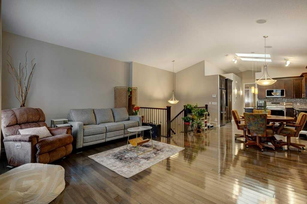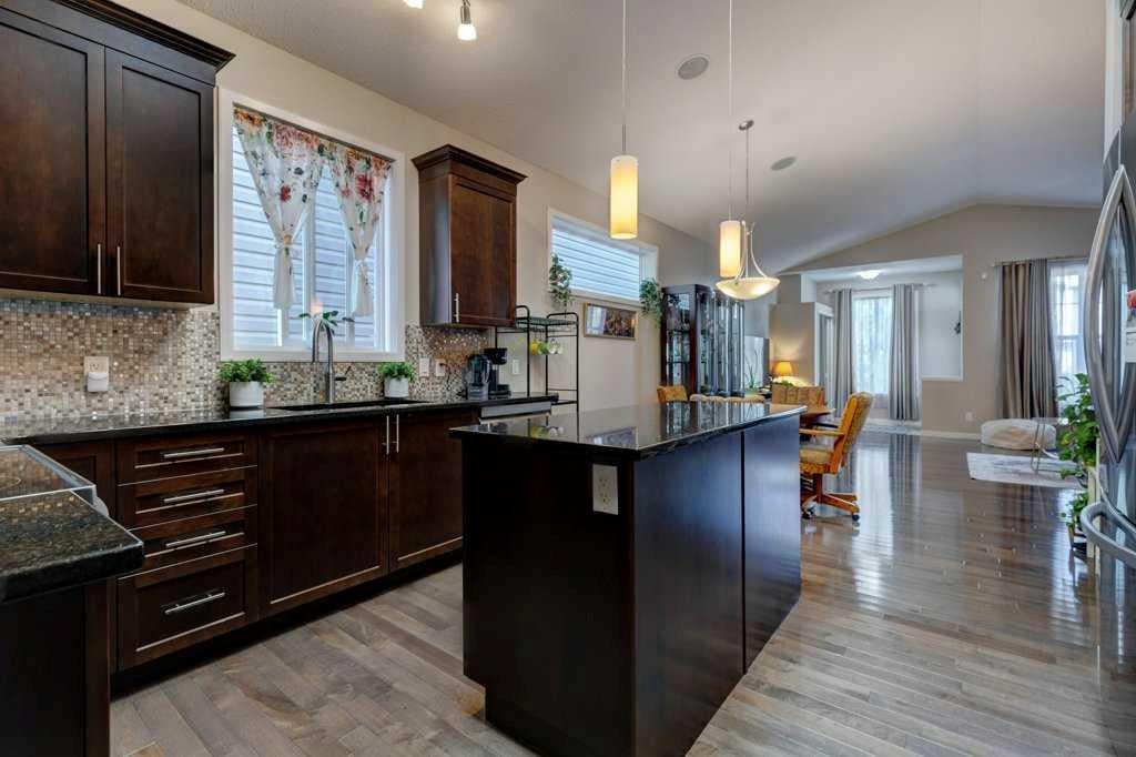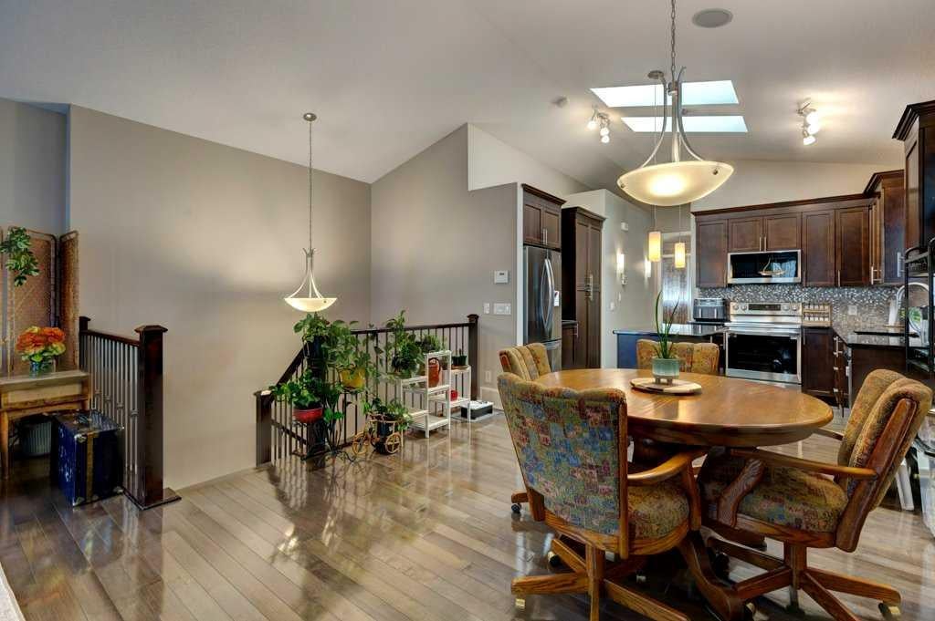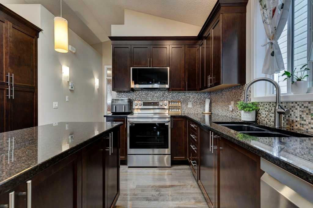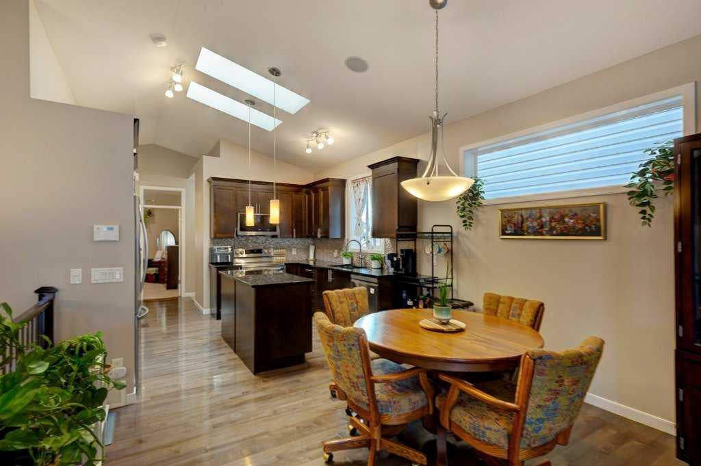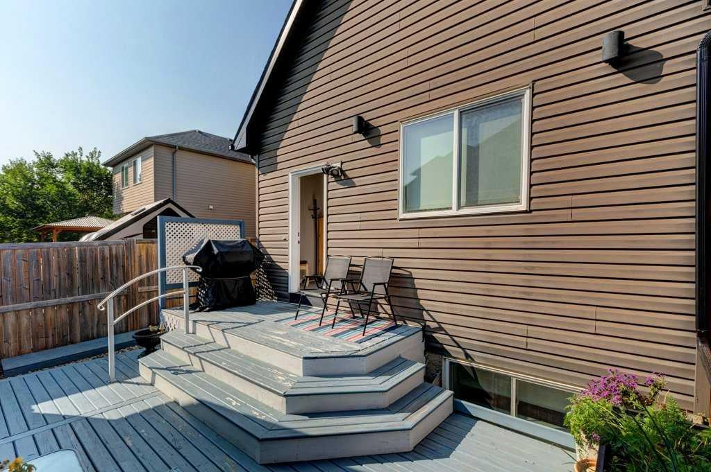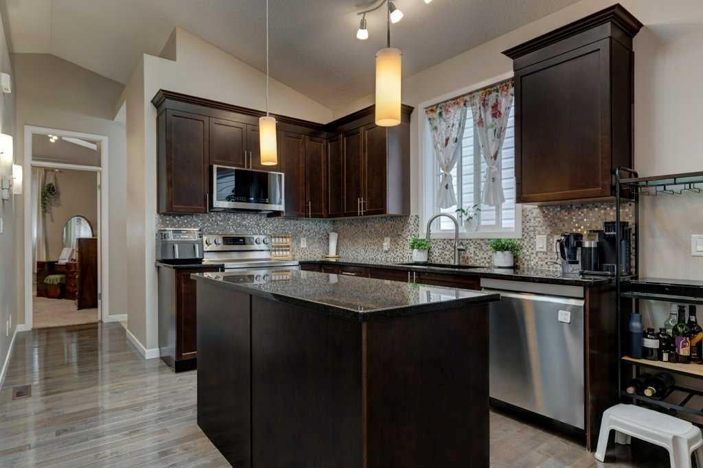 This beautifully maintained home combines modern elegance with everyday convenience and the floor plan impresses on all levels. The main floor open-concept is highlighted by gleaming hardwood floors, a neutral color palette, and abundant natural light, thanks to the additional two skylights. The chef-inspired kitchen features upscale cabinetry, granite countertops, spacious kitchen island, designer backsplash, newer stainless steel appliances and a functional layout perfect for both cooking and entertaining. The main floor also includes a spacious primary suite with a luxurious ensuite and walk-in closet, a convenient laundry room with a newer washer and dryer, a 1/2 bath and a well-designed mudroom — all thoughtfully placed for seamless daily living. The fully finished basement extends your living space with large windows, a cozy fireplace, an expansive recreation area, two additional bedrooms, a full 4-piece bathroom, and ample storage. The SOUTH backyard offers a private, decked area with a gas BBQ hookup, ideal for gatherings and summer evenings. A double garage with paved lane access adds both security and convenience. Note: All appliances are newer less than 2 years and the Hot Water tank is 2025. Perfectly situated on a quiet crescent, this home is close to schools, transit, major roadways, shopping, and everyday amenities. Impeccably cared for and move-in ready, it offers the perfect blend of comfort and style. DONT MISS OUT!!! Book an appointment with your favorite Realtor and experience this lovely home - you deserve it!